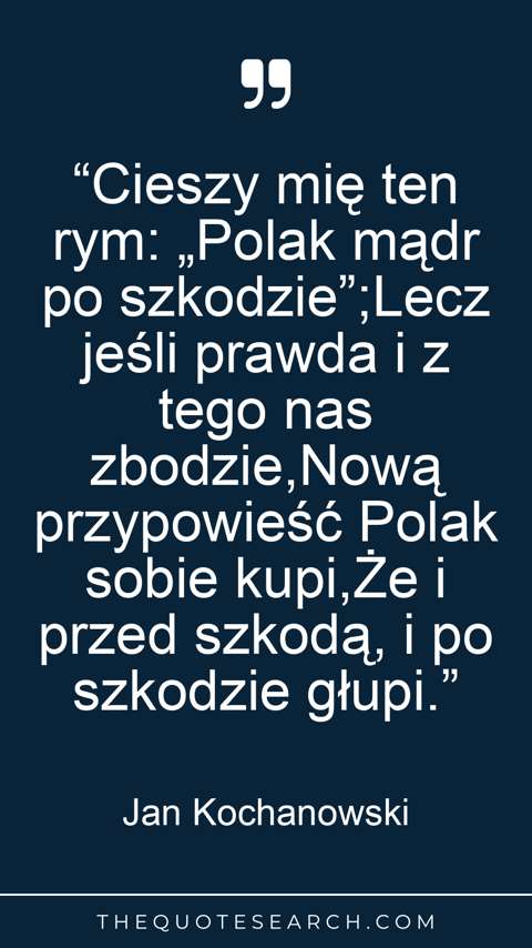 “Cieszy mię ten rym: „Polak mądr po szkodzie”;Lecz jeśli prawda i z tego nas zbodzie,Nową przypowieść Polak sobie kupi,Że i przed szkodą, i po szkodzie głupi.”