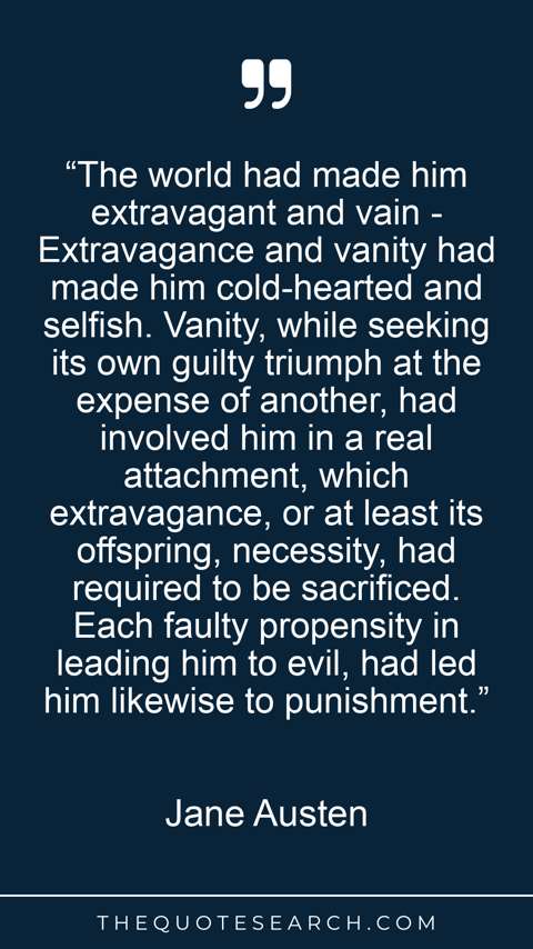 “The world had made him extravagant and vain - Extravagance and vanity had made him cold-hearted and selfish. Vanity, while seeking its own guilty triumph at the expense of another, had involved him in a real attachment, which extravagance, or at least its offspring, necessity, had required to be sacrificed. Each faulty propensity in leading him to evil, had led him likewise to punishment.”