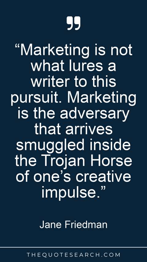 “Marketing is not what lures a writer to this pursuit. Marketing is the adversary that arrives smuggled inside the Trojan Horse of one’s creative impulse.”
