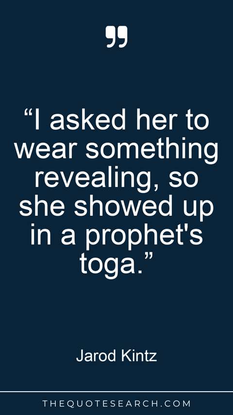 “I asked her to wear something revealing, so she showed up in a prophet's toga.”