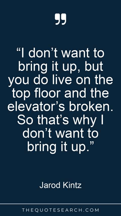 “I don’t want to bring it up, but you do live on the top floor and the elevator’s broken. So that’s why I don’t want to bring it up.”