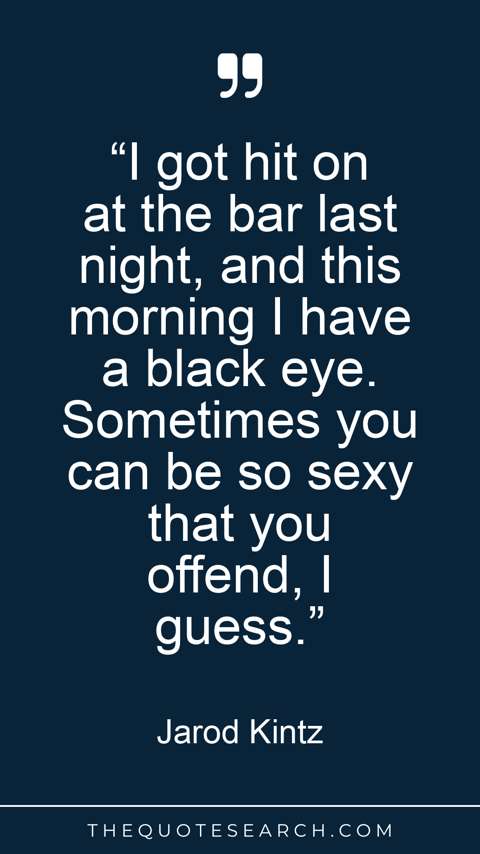 “I got hit on at the bar last night, and this morning I have a black eye. Sometimes you can be so sexy that you offend, I guess.”