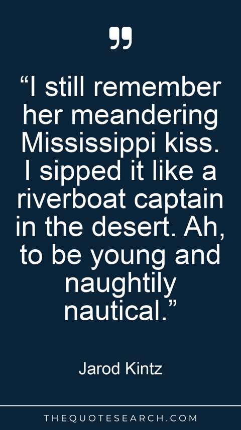 “I still remember her meandering Mississippi kiss. I sipped it like a riverboat captain in the desert. Ah, to be young and naughtily nautical.”