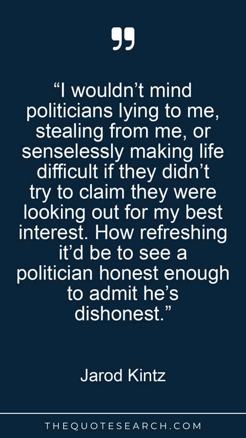 “I wouldn’t mind politicians lying to me, stealing from me, or senselessly making life difficult if they didn’t try to claim they were looking out for my best interest. How refreshing it’d be to see a politician honest enough to admit he’s dishonest.”