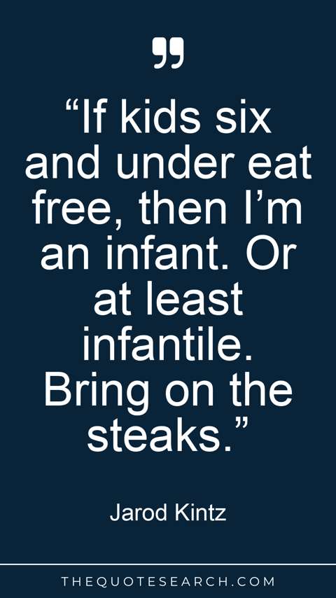 “If kids six and under eat free, then I’m an infant. Or at least infantile. Bring on the steaks.”