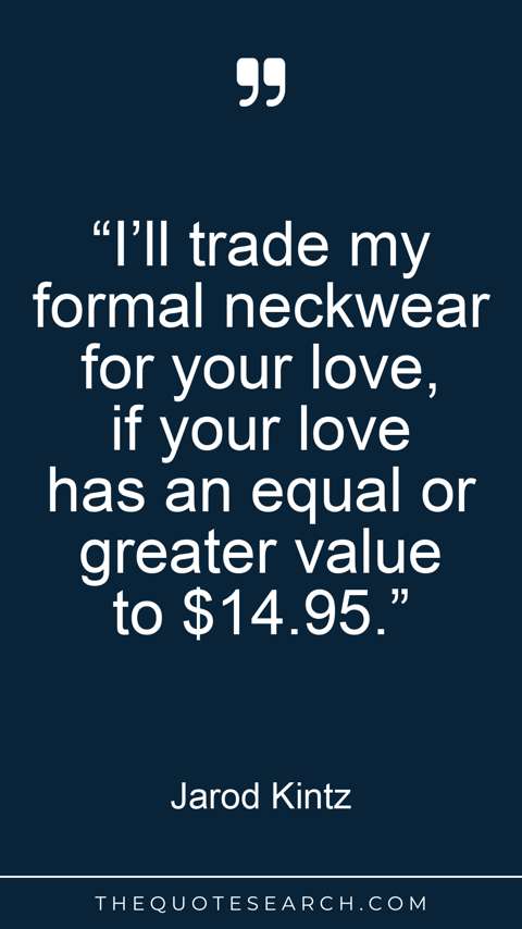 “I’ll trade my formal neckwear for your love, if your love has an equal or greater value to $14.95.”