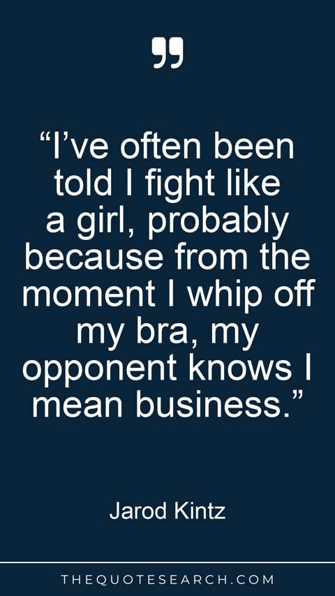 “I’ve often been told I fight like a girl, probably because from the moment I whip off my bra, my opponent knows I mean business.”
