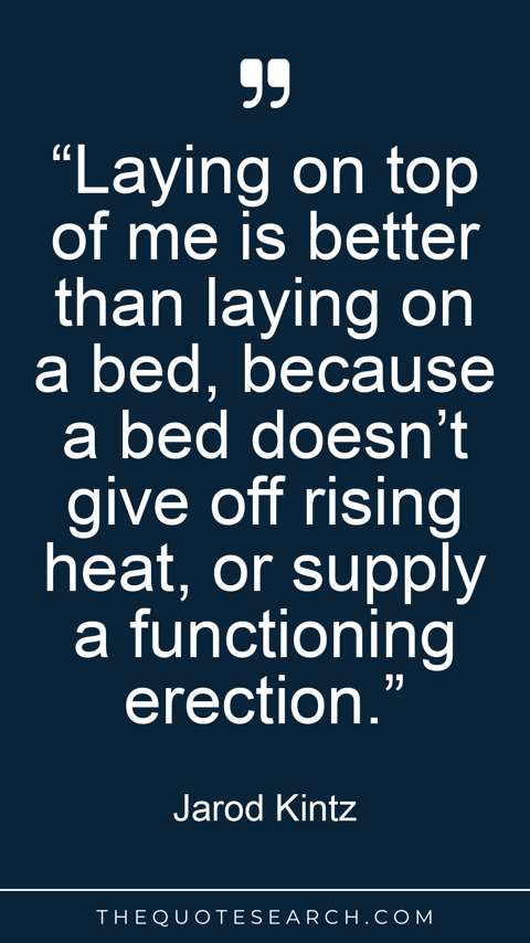 “Laying on top of me is better than laying on a bed, because a bed doesn’t give off rising heat, or supply a functioning erection.”