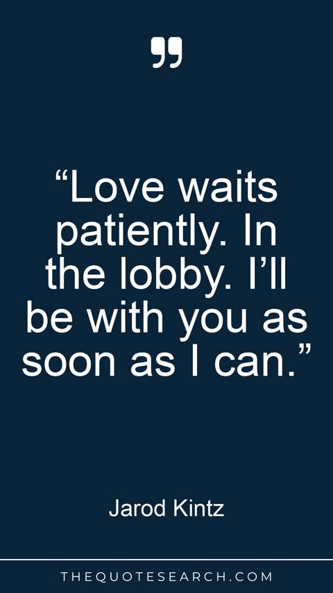 “Love waits patiently. In the lobby. I’ll be with you as soon as I can.”