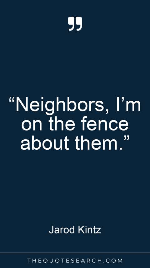 “If I could build my own neighbors, I’d have no need to build a fence. I would tell you, “I would tell you, but you wouldn’t understand,” but you wouldn’t understand what you wouldn’t understand.”