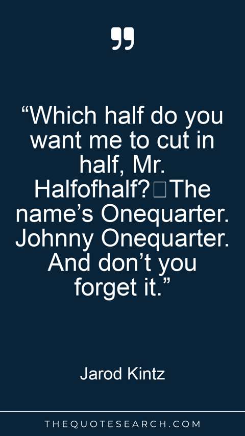 “Which half do you want me to cut in half, Mr. Halfofhalf? The name’s Onequarter. Johnny Onequarter. And don’t you forget it.”