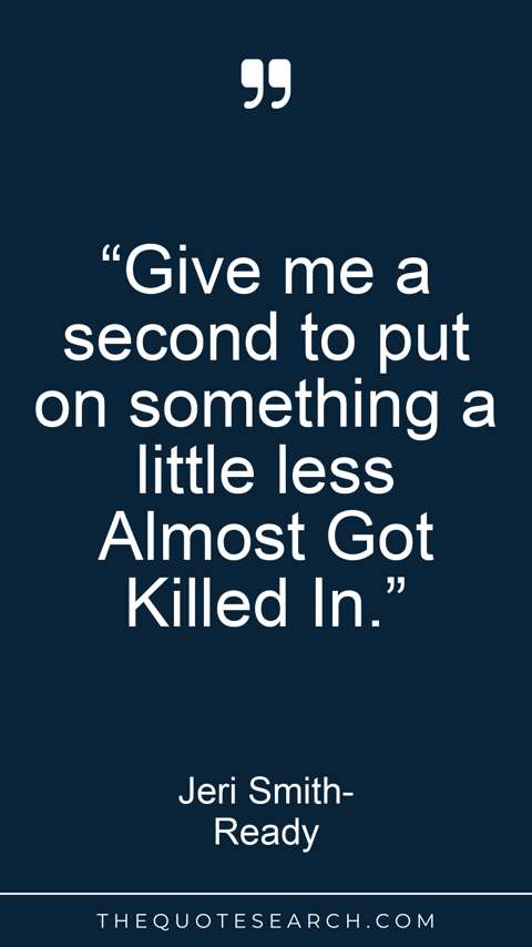 “Give me a second to put on something a little less Almost Got Killed In.”