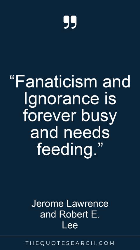 “Can't you understand? That if you take a law like evolution and you make it a crime to teach it in the public schools, tomorrow you can make it a crime to teach it in the private schools? And tomorrow you may make it a crime to read about it. And soon you may ban books and newspapers. And then you may turn Catholic against Protestant, and Protestant against Protestant, and try to foist your own religion upon the mind of man. If you can do one, you can do the other. Because fanaticism and ignorance is forever busy, and needs feeding. And soon, your Honor, with banners flying and with drums beating we'll be marching backward, BACKWARD, through the glorious ages of that Sixteenth Century when bigots burned the man who dared bring enlightenment and intelligence to the human mind-Henry Drummond, a character in Inherit The Wind”