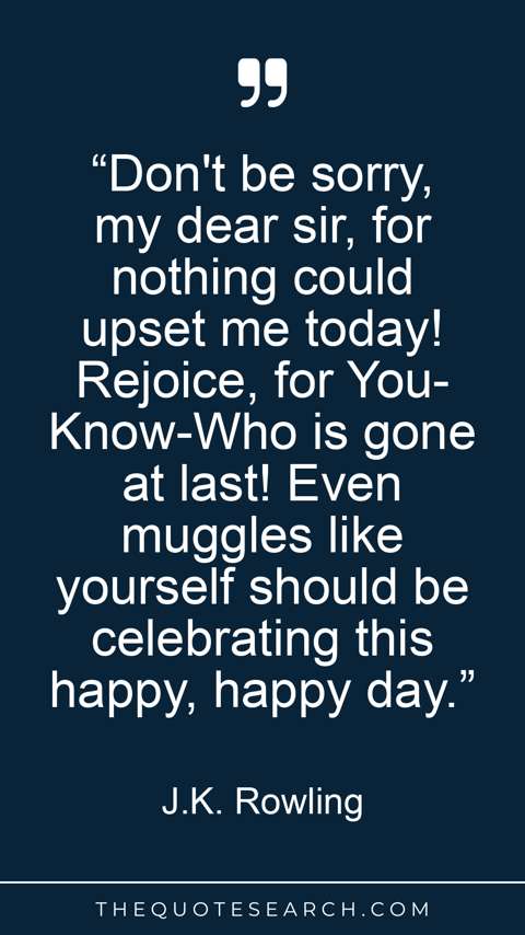 “Don't be sorry, my dear sir, for nothing could upset me today! Rejoice, for You-Know-Who is gone at last! Even muggles like yourself should be celebrating this happy, happy day.”