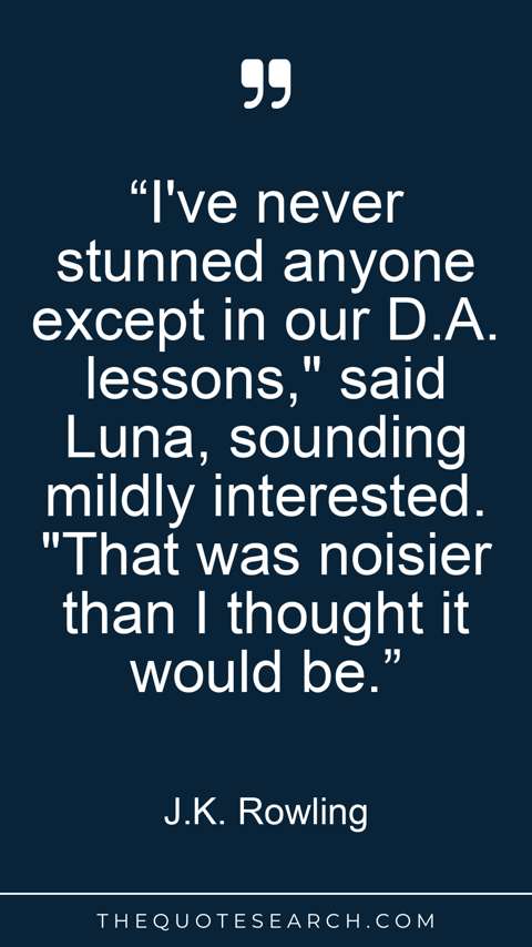 “I've never stunned anyone except in our D.A. lessons," said Luna, sounding mildly interested. "That was noisier than I thought it would be.”
