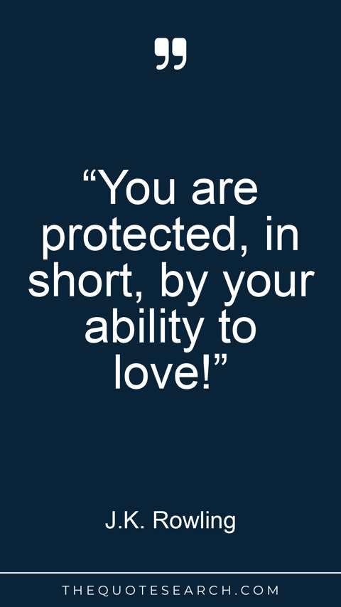 “Your mother died to save you. If there is one thing Voldemort cannot understand, it is love. He didn't realize that love as powerful as your mother's for you leaves its own mark. Not a scar, no visible sign… to have been loved so deeply, even though the person who loved us is gone, will give us some protection forever. It is in your very own skin. Quirrel, full of hatred, greed, and ambition, sharing his soul with Voldemort, could not touch you for this reason. It was agony to touch a person marked by something so good.”