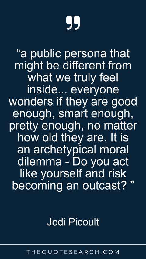 “a public persona that might be different from what we truly feel inside... everyone wonders if they are good enough, smart enough, pretty enough, no matter how old they are. It is an archetypical moral dilemma - Do you act like yourself and risk becoming an outcast? ”