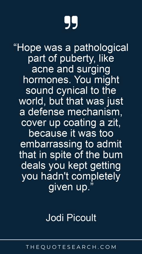“Hope was a pathological part of puberty, like acne and surging hormones. You might sound cynical to the world, but that was just a defense mechanism, cover up coating a zit, because it was too embarrassing to admit that in spite of the bum deals you kept getting you hadn't completely given up.”