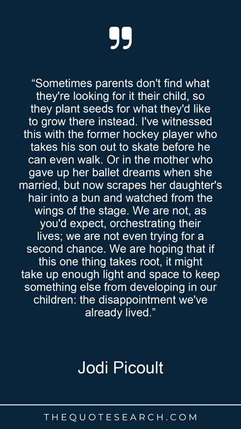 “Sometimes parents don't find what they're looking for it their child, so they plant seeds for what they'd like to grow there instead. I've witnessed this with the former hockey player who takes his son out to skate before he can even walk. Or in the mother who gave up her ballet dreams when she married, but now scrapes her daughter's hair into a bun and watched from the wings of the stage. We are not, as you'd expect, orchestrating their lives; we are not even trying for a second chance. We are hoping that if this one thing takes root, it might take up enough light and space to keep something else from developing in our children: the disappointment we've already lived.”