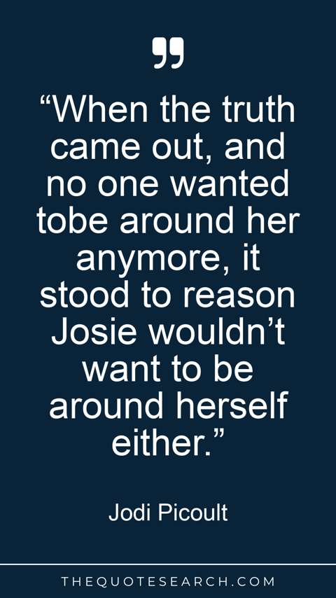 “When the truth came out, and no one wanted tobe around her anymore, it stood to reason Josie wouldn’t want to be around herself either.”