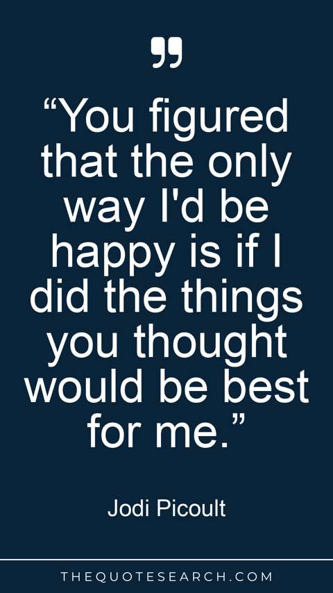 “You figured that the only way I'd be happy is if I did the things you thought would be best for me.”