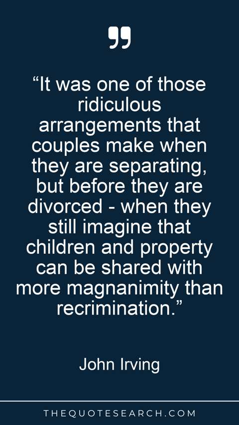 “It was one of those ridiculous arrangements that couples make when they are separating, but before they are divorced - when they still imagine that children and property can be shared with more magnanimity than recrimination.”