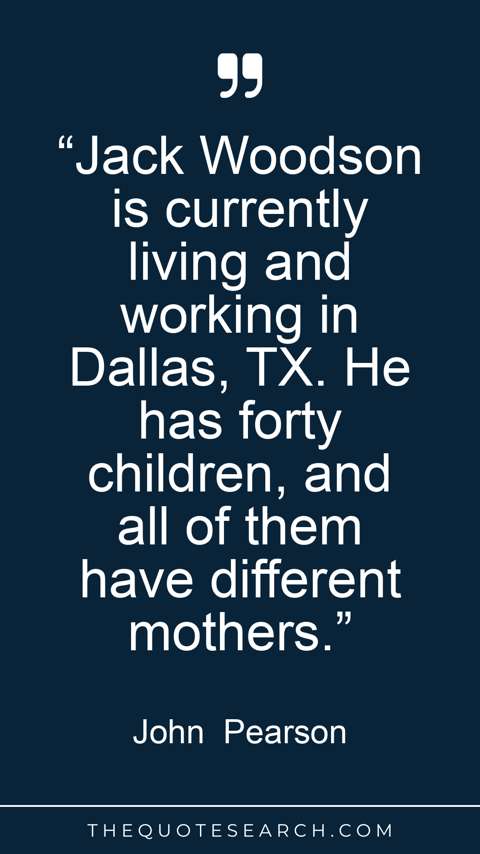 “Jack Woodson is currently living and working in Dallas, TX. He has forty children, and all of them have different mothers.”