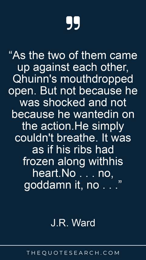 “As the two of them came up against each other, Qhuinn's mouthdropped open. But not because he was shocked and not because he wantedin on the action.He simply couldn't breathe. It was as if his ribs had frozen along withhis heart.No . . . no, goddamn it, no . . .”