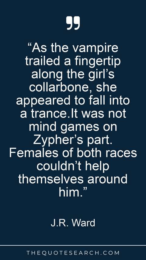 “As the vampire trailed a fingertip along the girl’s collarbone, she appeared to fall into a trance.It was not mind games on Zypher’s part. Females of both races couldn’t help themselves around him.”