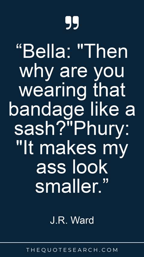 “Bella: "Then why are you wearing that bandage like a sash?"Phury: "It makes my ass look smaller.”