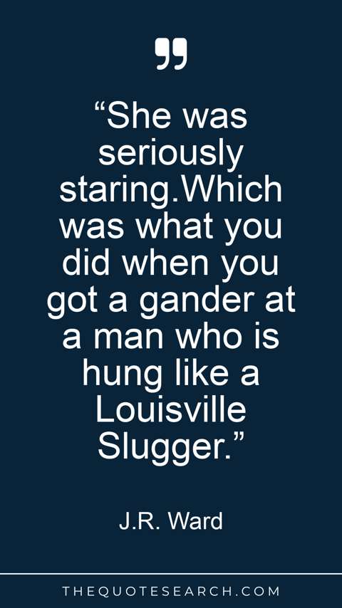 “She was seriously staring.Which was what you did when you got a gander at a man who is hung like a Louisville Slugger.”