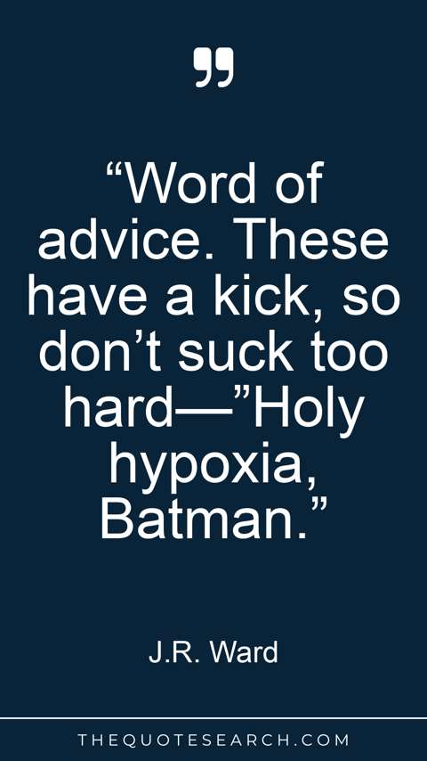 “Word of advice. These have a kick, so don’t suck too hard—”Holy hypoxia, Batman.”