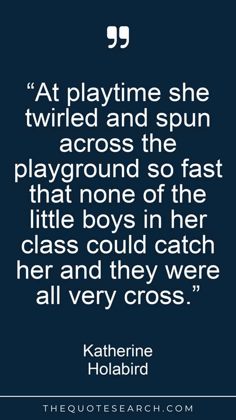“At playtime she twirled and spun across the playground so fast that none of the little boys in her class could catch her and they were all very cross.”