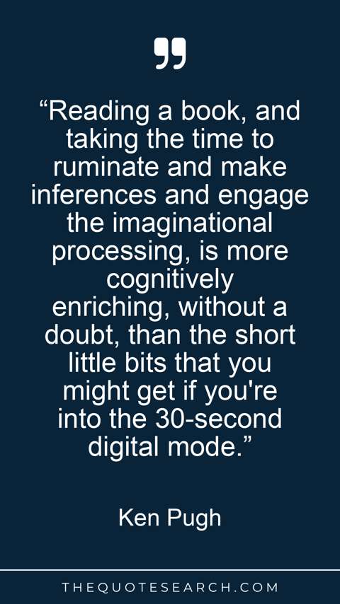 “Reading a book, and taking the time to ruminate and make inferences and engage the imaginational processing, is more cognitively enriching, without a doubt, than the short little bits that you might get if you're into the 30-second digital mode.”