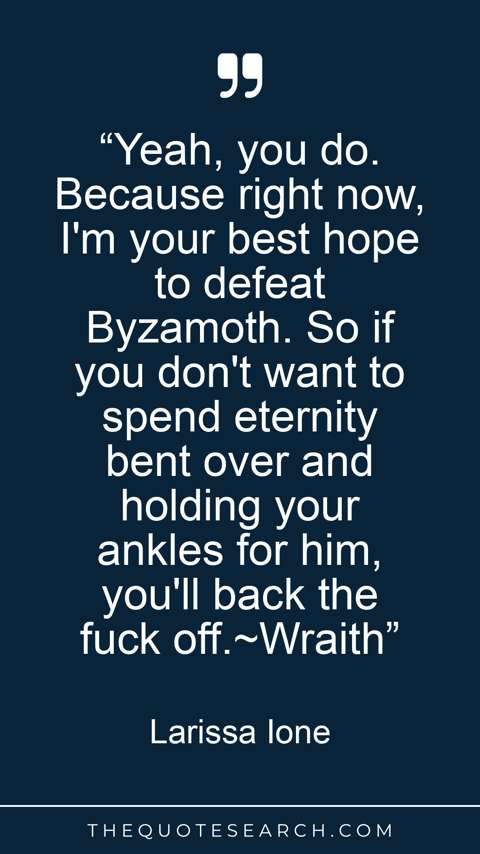 “Yeah, you do. Because right now, I'm your best hope to defeat Byzamoth. So if you don't want to spend eternity bent over and holding your ankles for him, you'll back the fuck off.~Wraith”