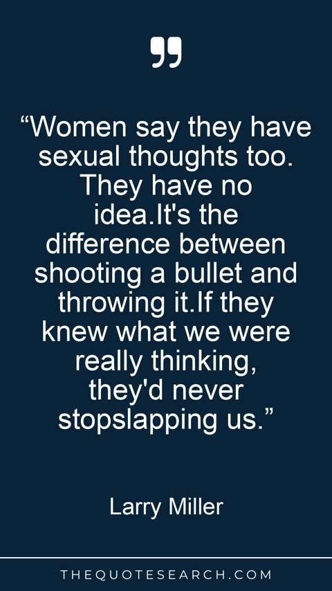 “Women say they have sexual thoughts too. They have no idea.It's the difference between shooting a bullet and throwing it.If they knew what we were really thinking, they'd never stopslapping us.”