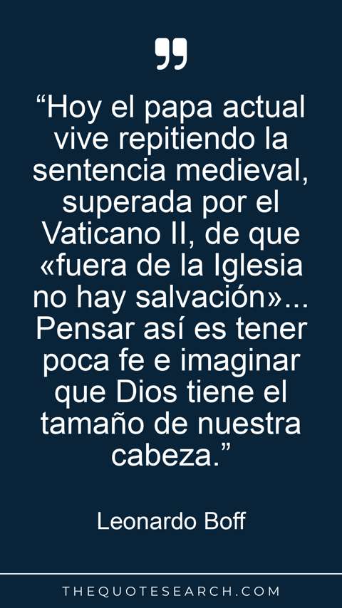 “Hoy el papa actual vive repitiendo la sentencia medieval, superada por el Vaticano II, de que «fuera de la Iglesia no hay salvación»... Pensar así es tener poca fe e imaginar que Dios tiene el tamaño de nuestra cabeza.”