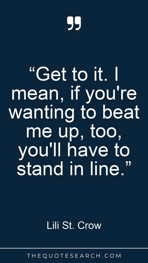 “Get to it. I mean, if you're wanting to beat me up, too, you'll have to stand in line.”