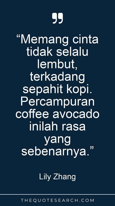 “Memang cinta tidak selalu lembut, terkadang sepahit kopi. Percampuran coffee avocado inilah rasa yang sebenarnya.”