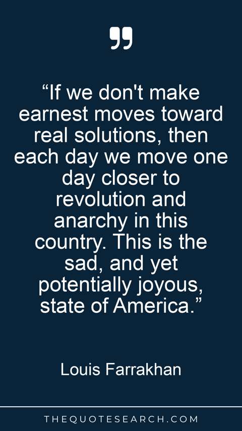 “If we don't make earnest moves toward real solutions, then each day we move one day closer to revolution and anarchy in this country. This is the sad, and yet potentially joyous, state of America.”