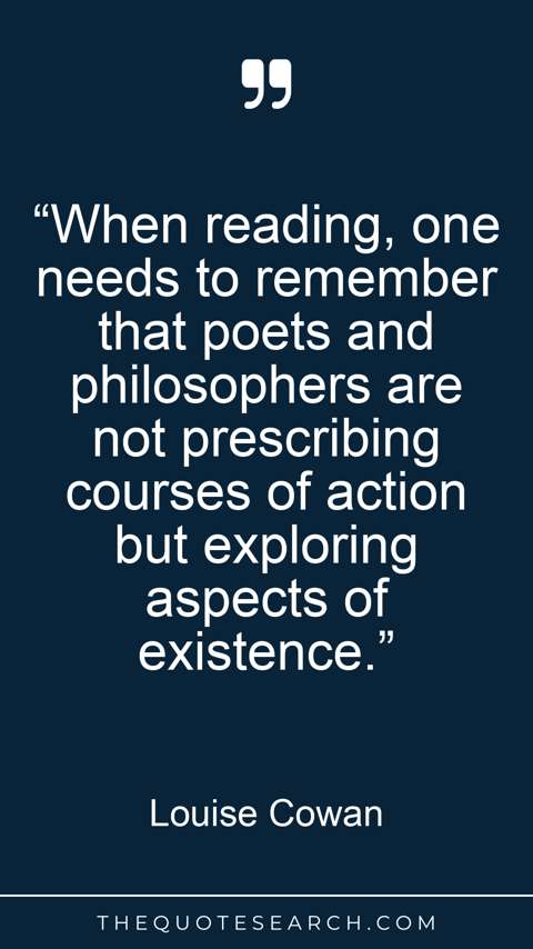 “When reading, one needs to remember that poets and philosophers are not prescribing courses of action but exploring aspects of existence.”