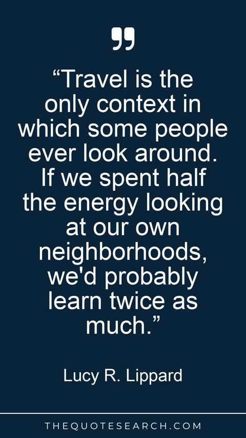 “Travel is the only context in which some people ever look around. If we spent half the energy looking at our own neighborhoods, we'd probably learn twice as much.”