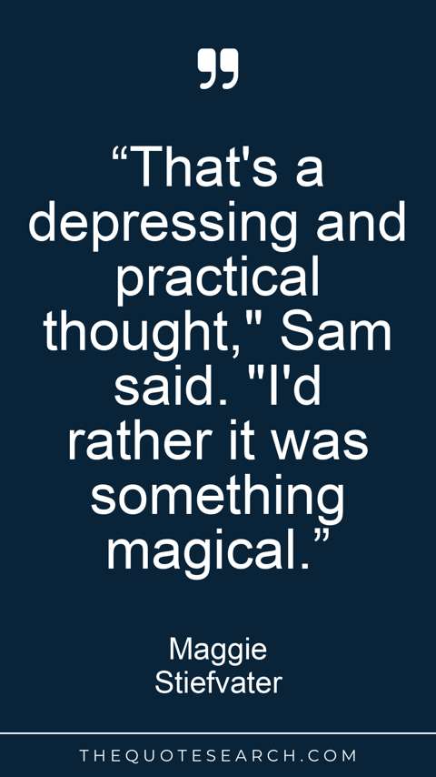 “That's a depressing and practical thought," Sam said. "I'd rather it was something magical.”