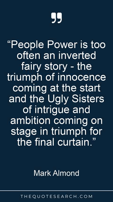 “People Power is too often an inverted fairy story - the triumph of innocence coming at the start and the Ugly Sisters of intrigue and ambition coming on stage in triumph for the final curtain.”