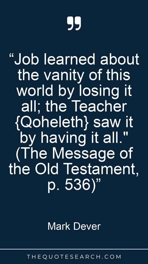 “Job learned about the vanity of this world by losing it all; the Teacher {Qoheleth} saw it by having it all." (The Message of the Old Testament, p. 536)”
