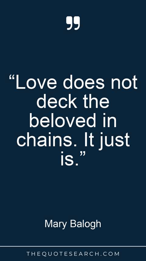 “Love does not involve emotions, then?" he asked her with a smile."It is not ruled by them," she told him. "Love is liking and companionship and respect and trust. Love does not dominate or try to possess. Love thrives only in a commitment to pure, mutual freedom. That is why marriage is so tricky. There are the marriage ceremony and the marriage vows and the necessity for fidelity -all of them suggestive of restraints, even imprisonment. Men talk of life sentences and leg shackles in connection with marriage, do they not? But marriage out to be just the opposite -two people agreeing to set each other free,”
