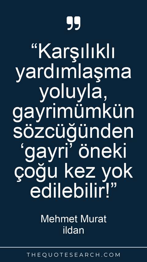 “Karşılıklı yardımlaşma yoluyla, gayrimümkün sözcüğünden ‘gayri’ öneki çoğu kez yok edilebilir!”