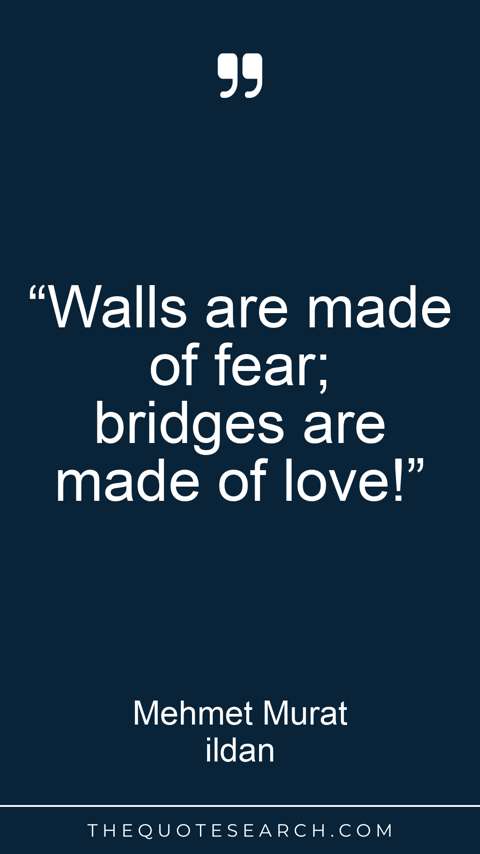 “With stones, you can build walls to separate people or build bridges to unite them! Do the second thing in the name of ethics and honour, for the glory of love and goodness!”