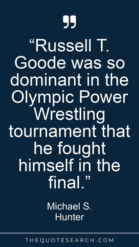 “Russell T. Goode was so dominant in the Olympic Power Wrestling tournament that he fought himself in the final.”