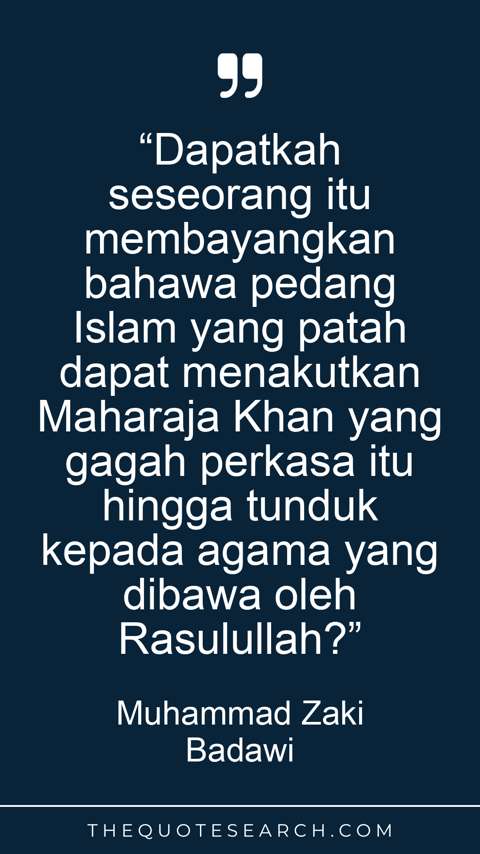 “Dapatkah seseorang itu membayangkan bahawa pedang Islam yang patah dapat menakutkan Maharaja Khan yang gagah perkasa itu hingga tunduk kepada agama yang dibawa oleh Rasulullah?”